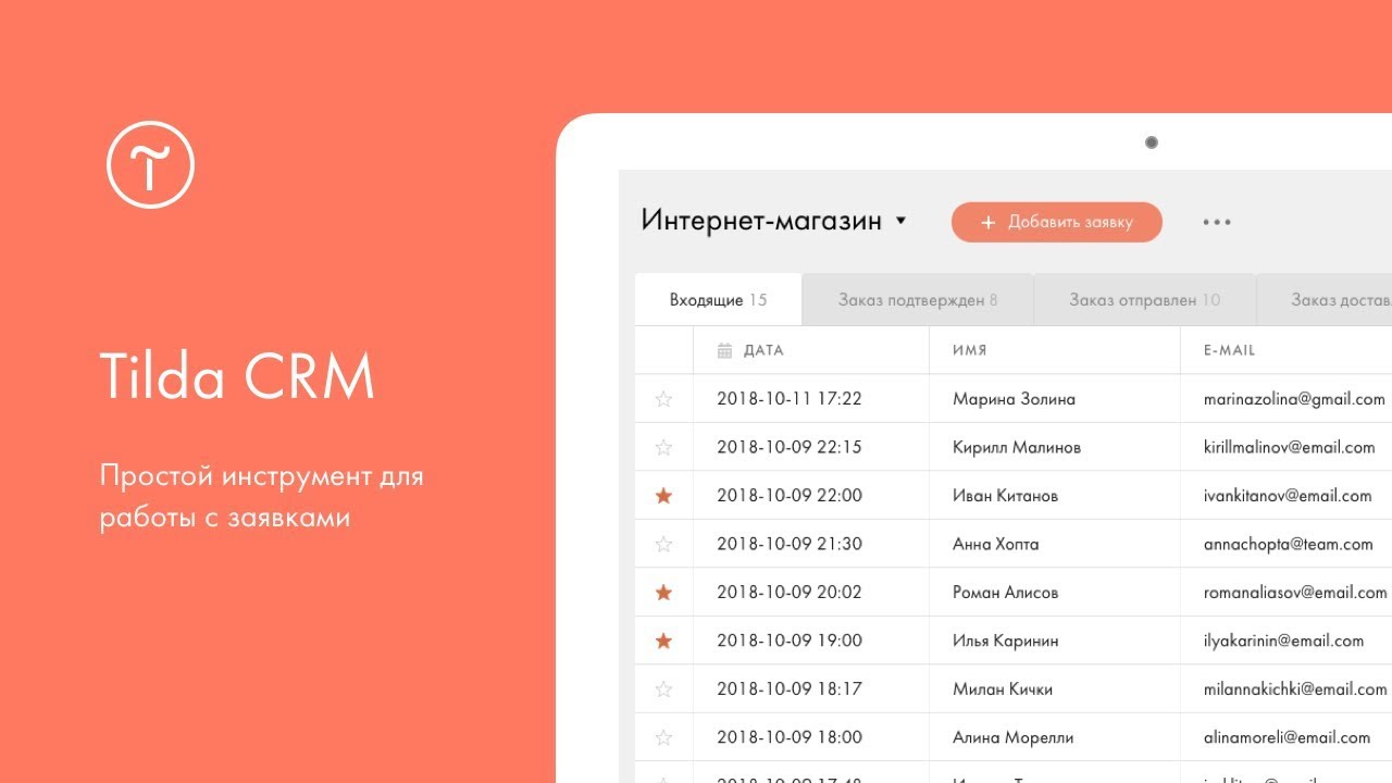 Перейдите в Tilda CRM через вкладку в меню или по прямому адресу — https://crm.tilda.cc/.